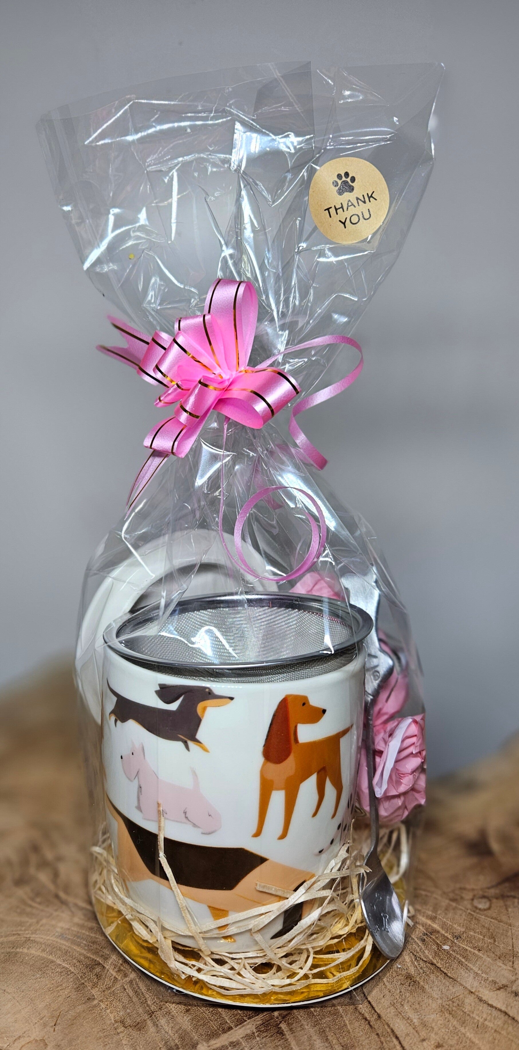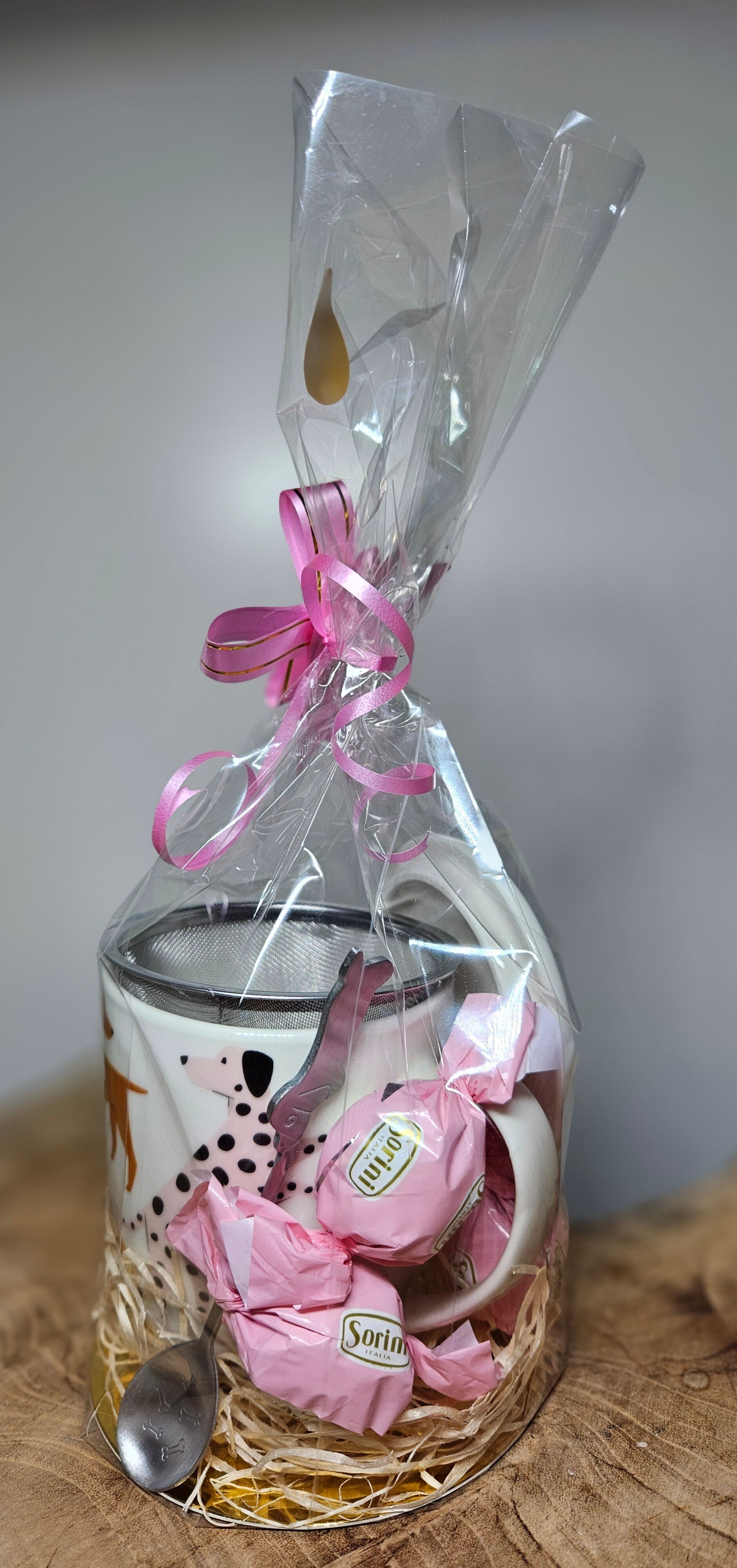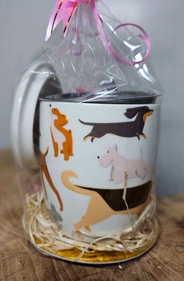 - 1x mok met deksel én uitneembare thee- infuser. Vaatwasser- en magnetron bestendig. Afmetingen 8x 7 x 11 cm.