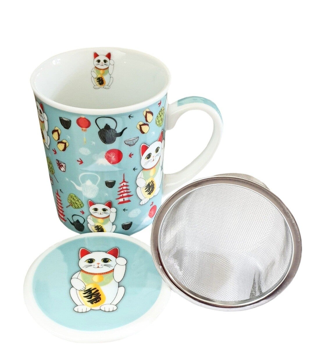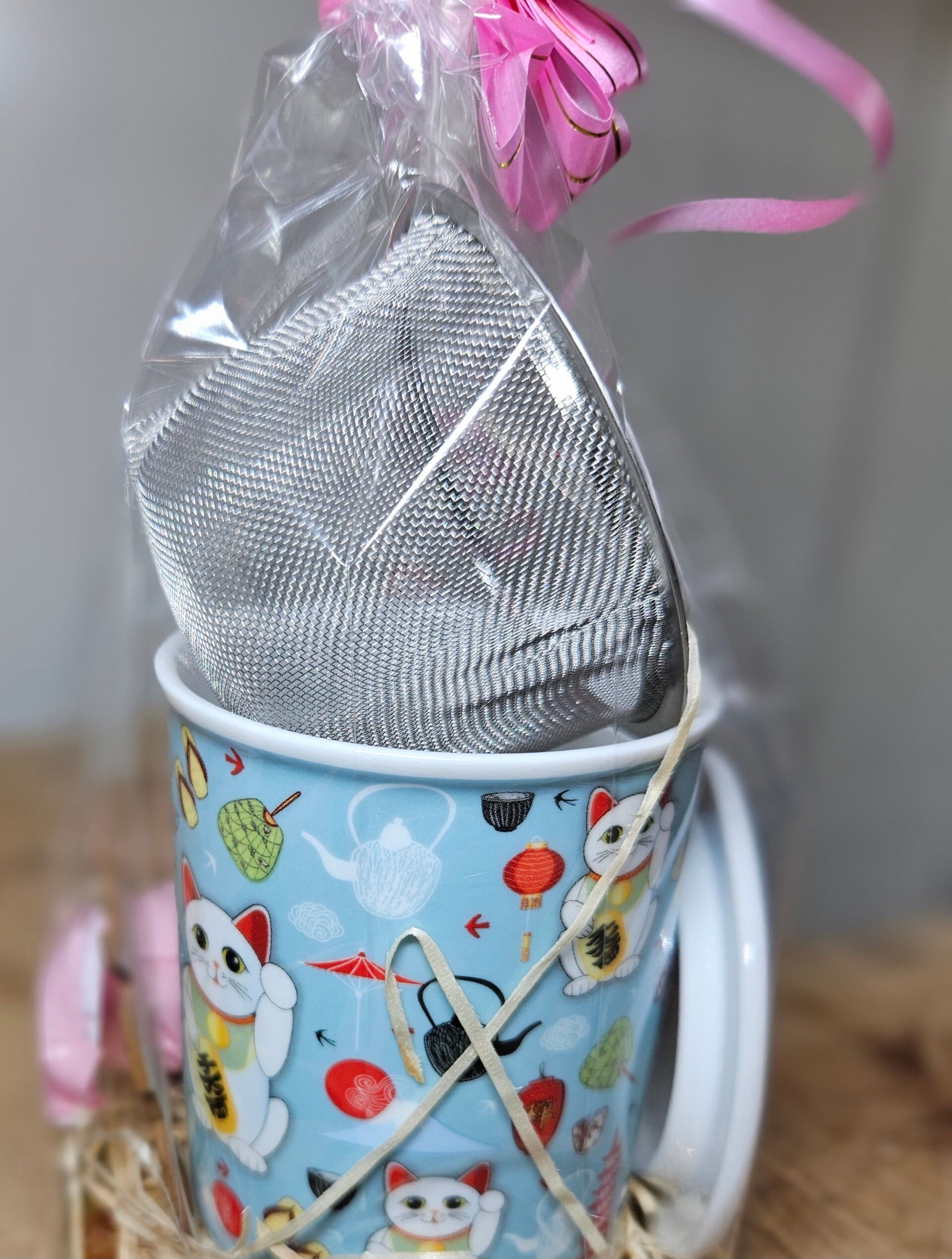 - 1x poseleinen mok met uitneembare theefilter en deksel van het merk Chakult. Afmetingen 7x 7x 9,5 cm
