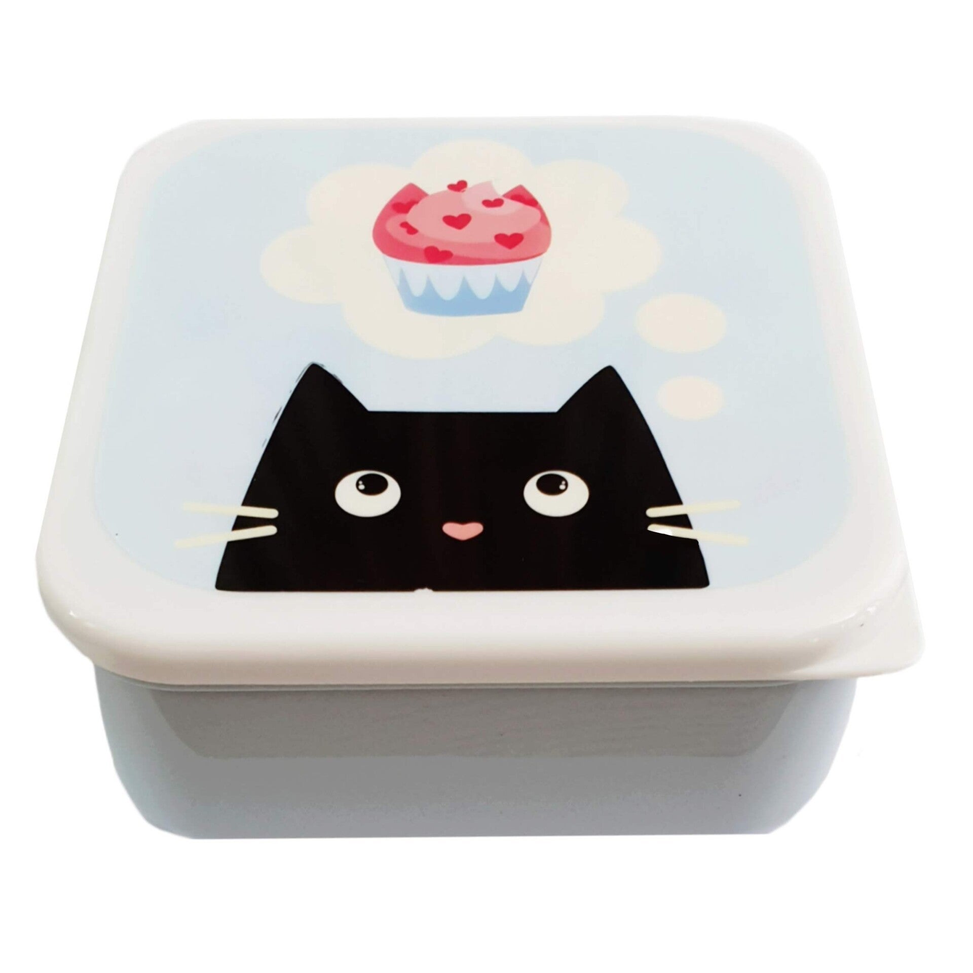 - 1x opbergbakje blauw kat cupcake print 13x 13x 5,5 cm (niet vaatwasser -en magnetronbestendig)