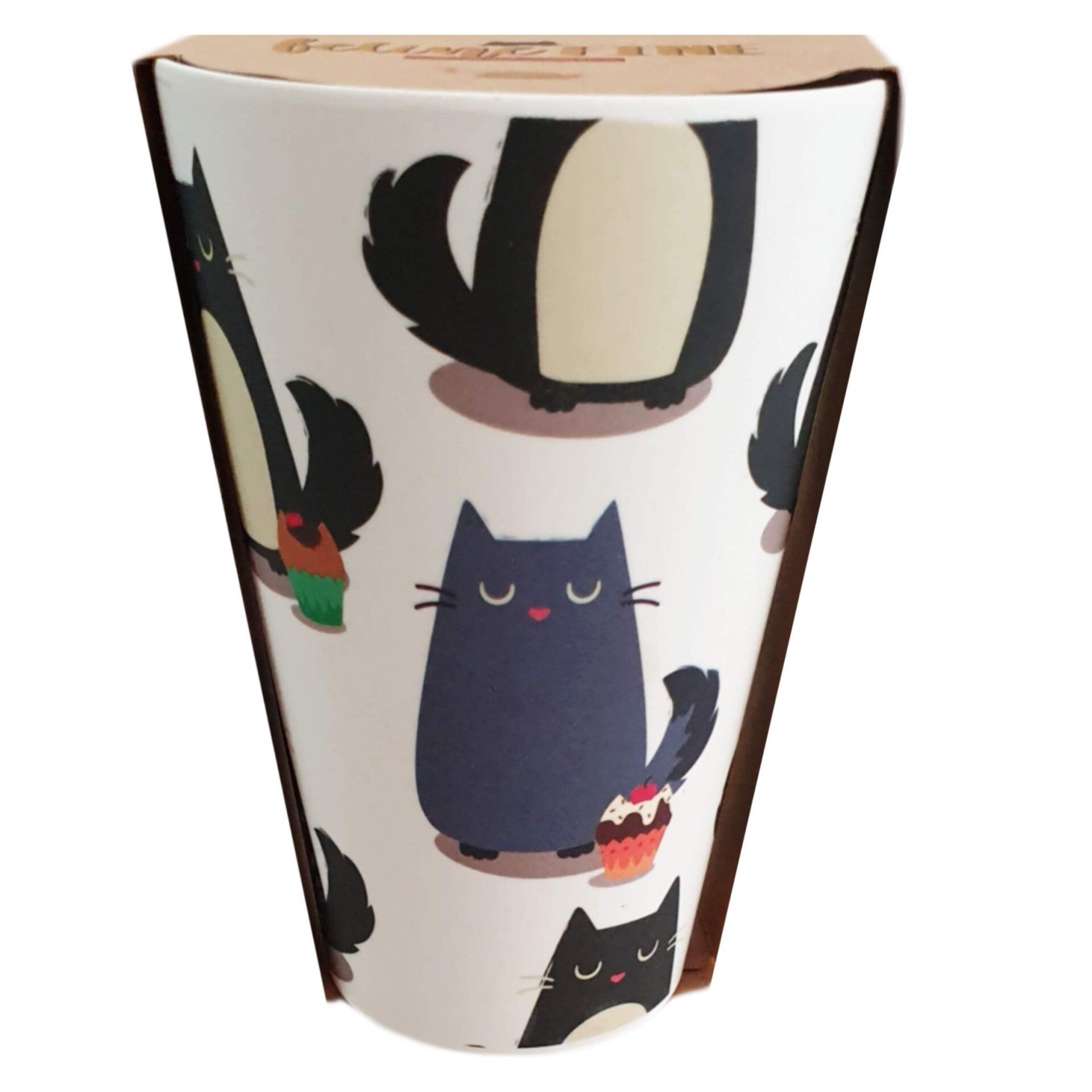 - 1x bamboe beker met kattenprint inhoud 400 ml. Geschikt voor de vaatwasser