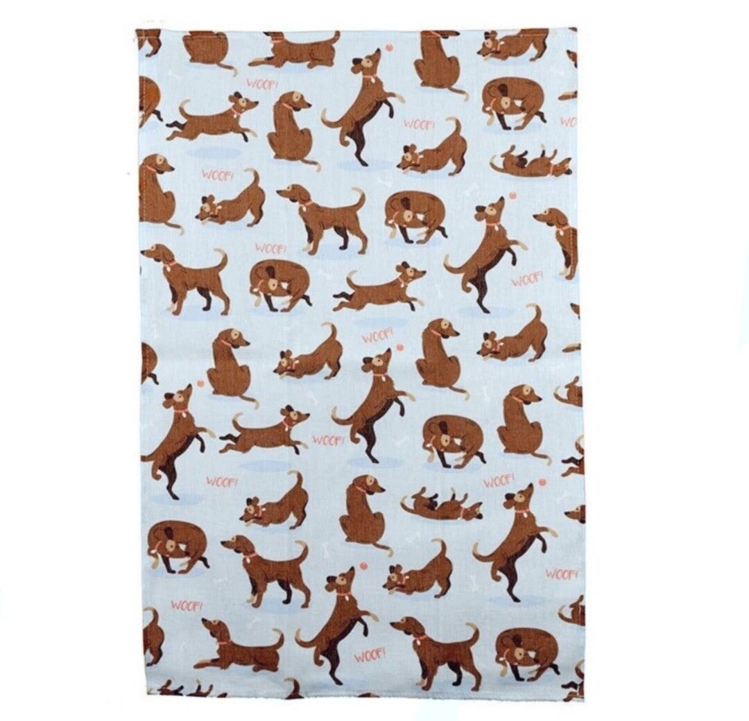 - 1x keukendoek met hondenprint. 35% katoen en 65% polyester. De afmetingen zijn 45x 70 cm