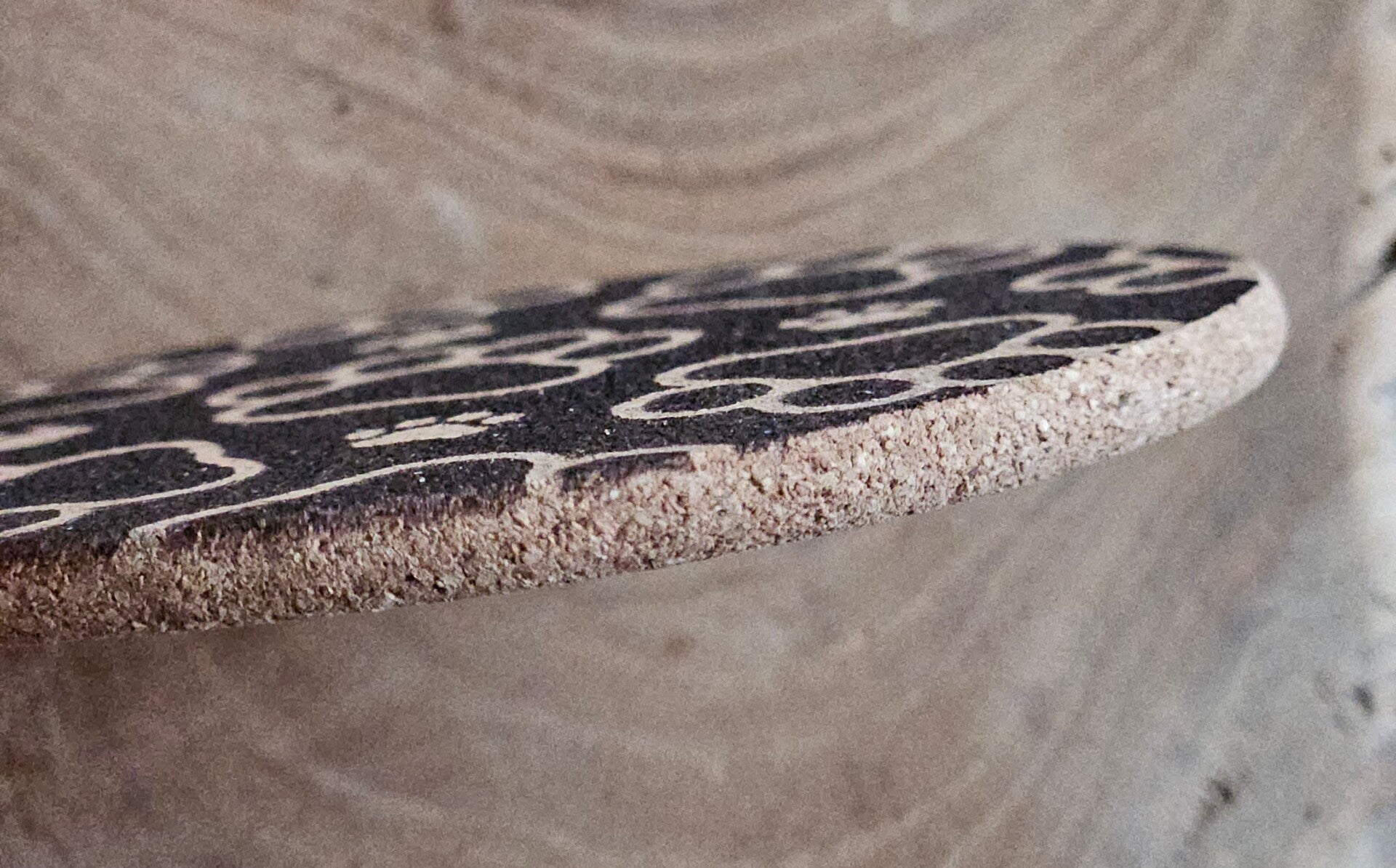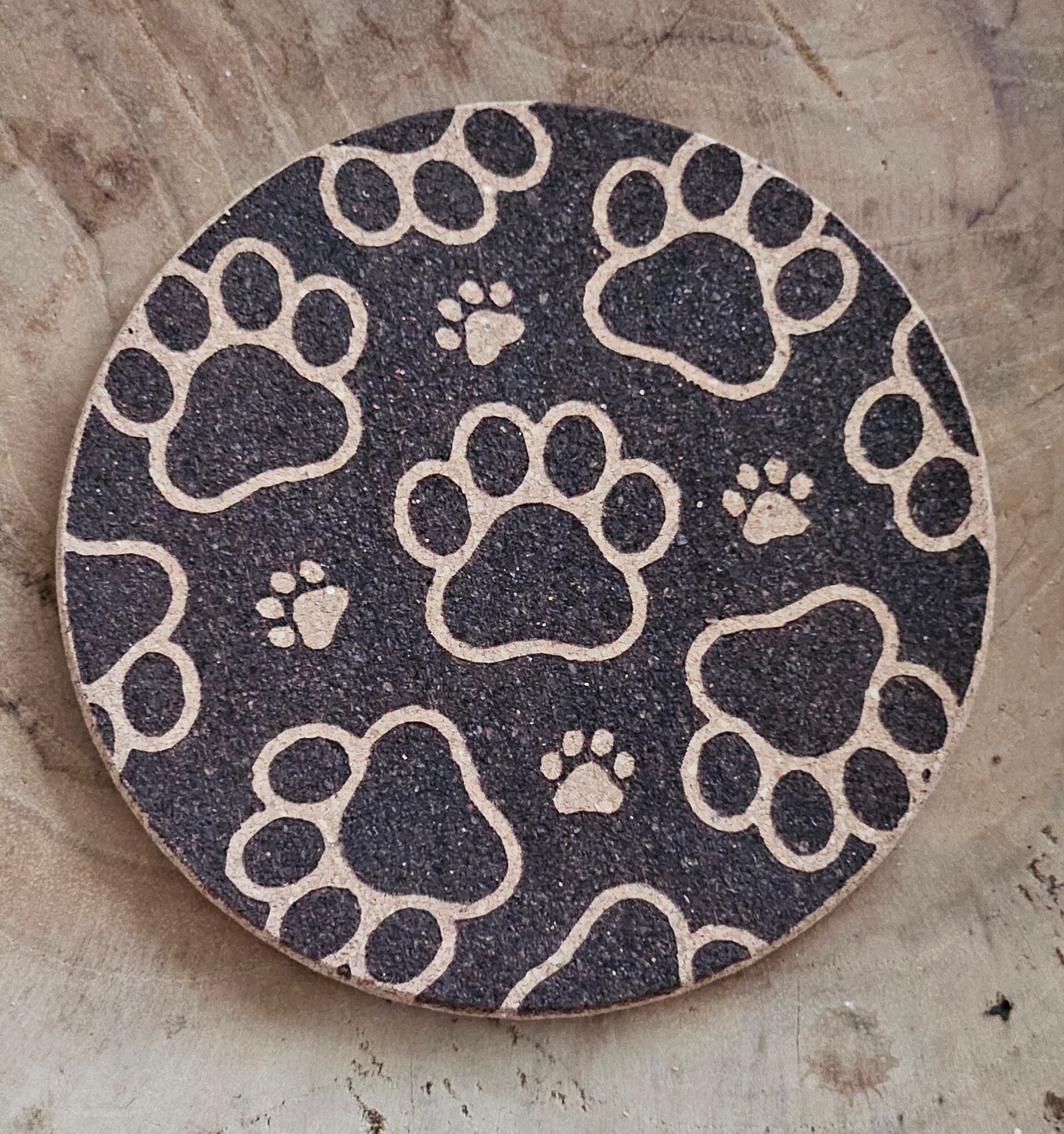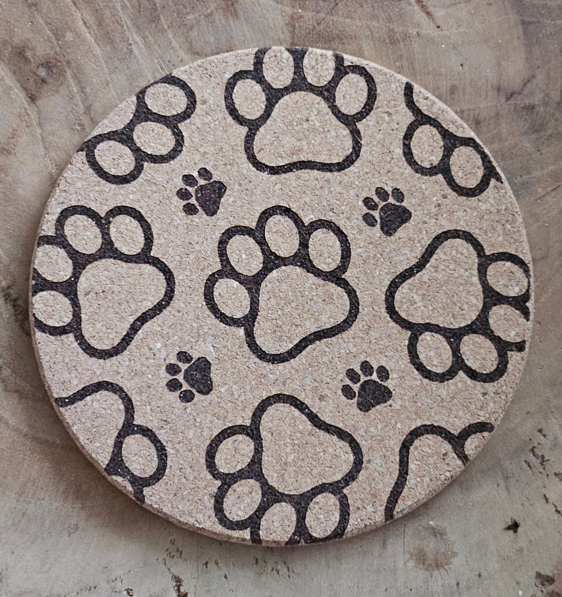 Leuke onderzetter gemaakt van kurk en met een leuke pootjesprint. De doorsnede is 10 cm. Verkrijgbaar in 2 kleuren.