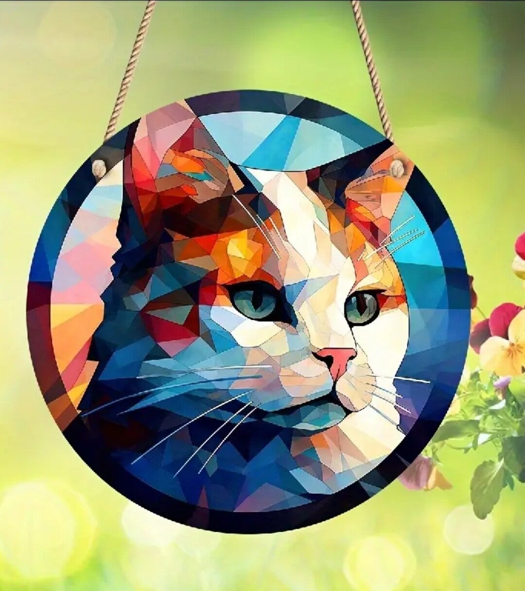 Prachtige 2D (let op: dus géén 3D!) gekleurde suncatcher van acryl. Op te hangen door middel van het meegeleverde touwtje.