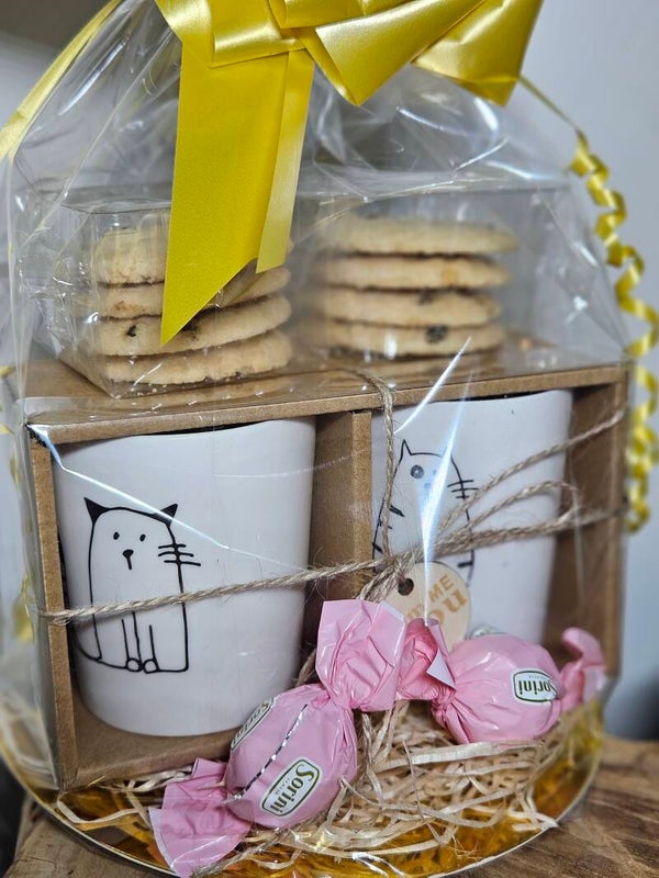 - 1x gifset 2 kleine kopjes doorsnede 7,8 cm en 9 cm hoog. De inhoud is 240 ml