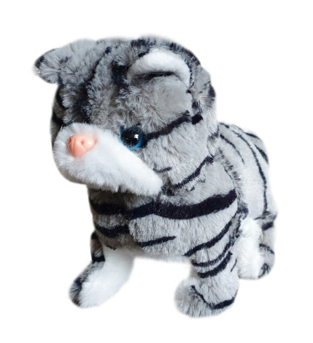 - 1x Pluche speelgoed knuffel van een kat, werkt op batterijen (niet inbegrepen). Geeft geluid als deze ingeschakeld is en loopt