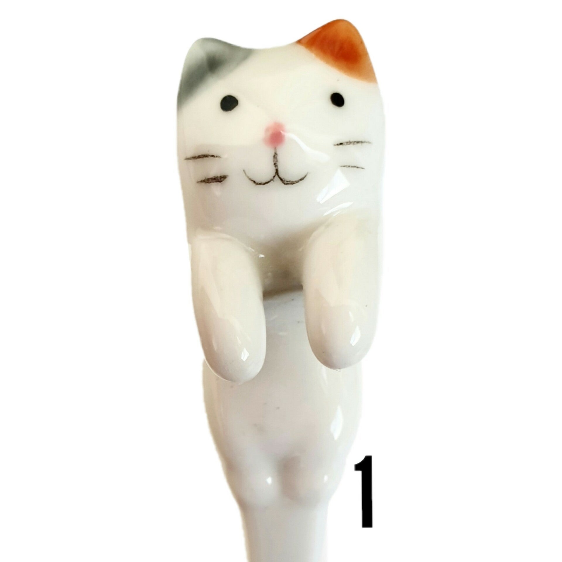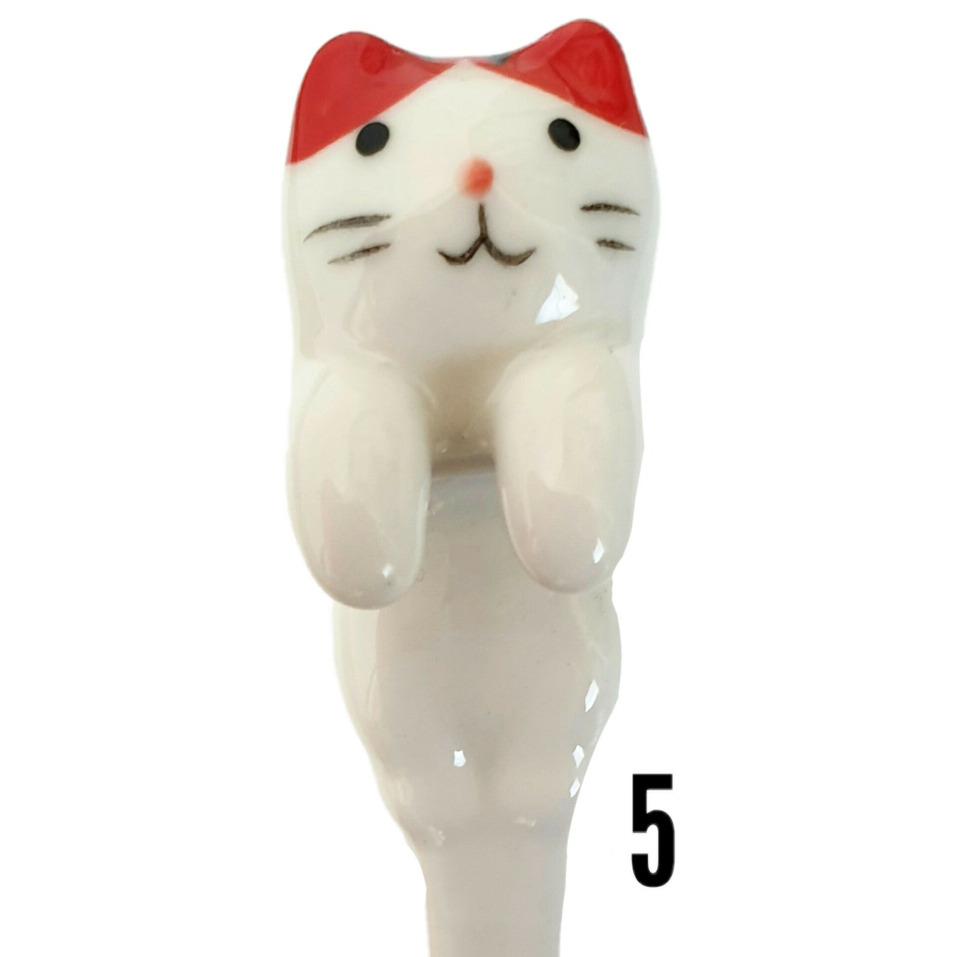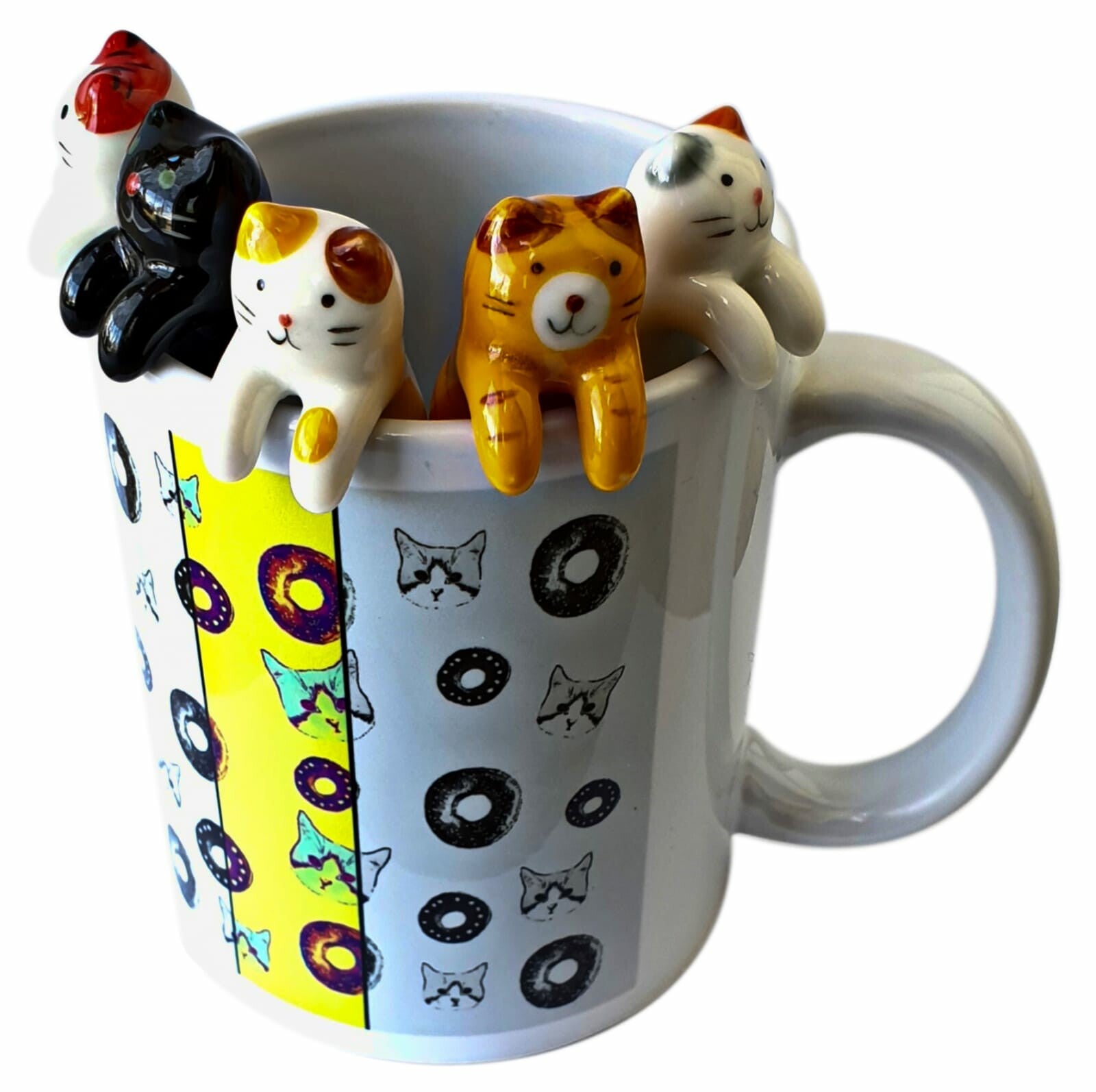 Keramiek lepeltjes die net de pootjes over de rand van je mok/ glas blijven hangen. De lengte is 11 cm en de breedte circa 3 cm.