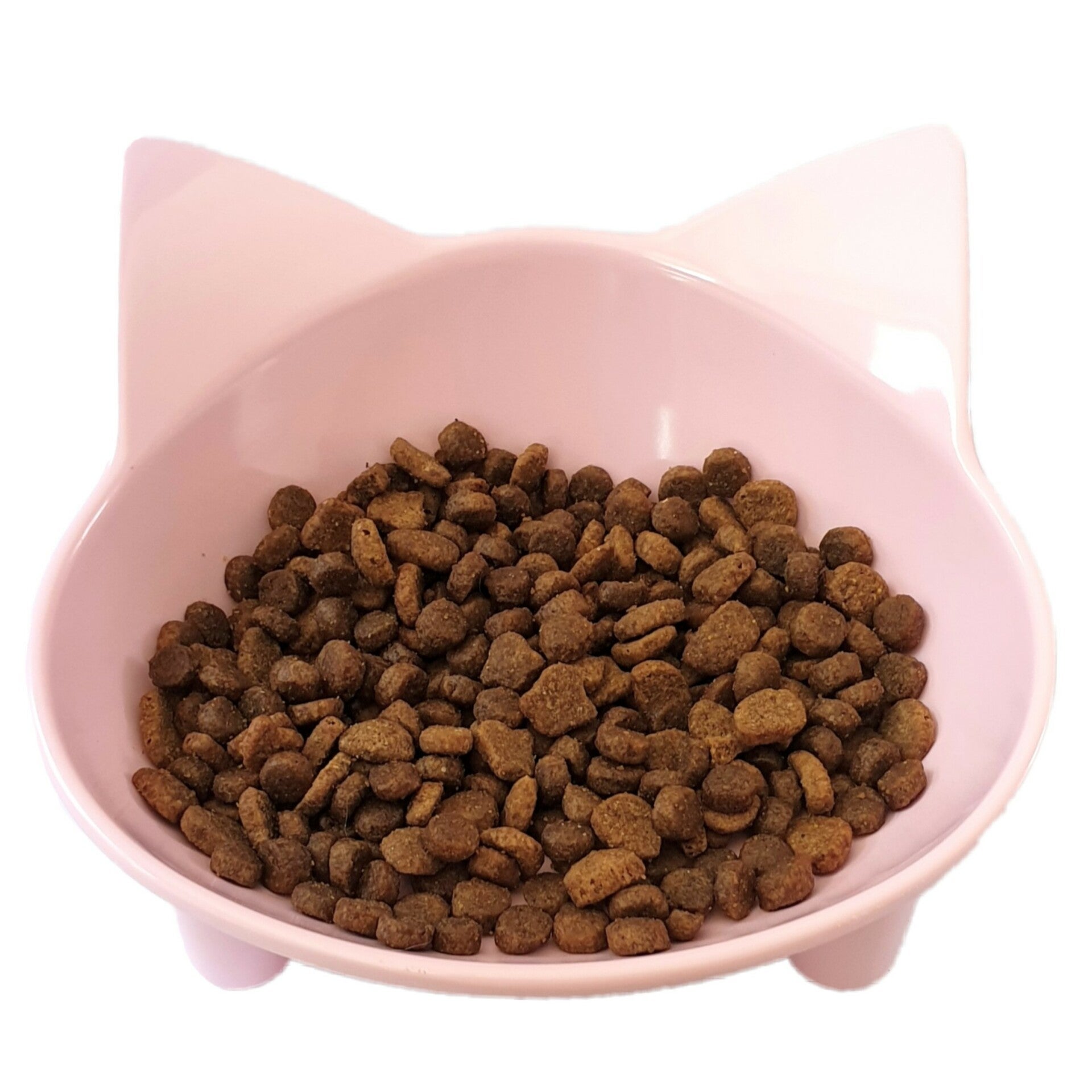 Voer/ drinkbakje "Kattenkop" lichtroze