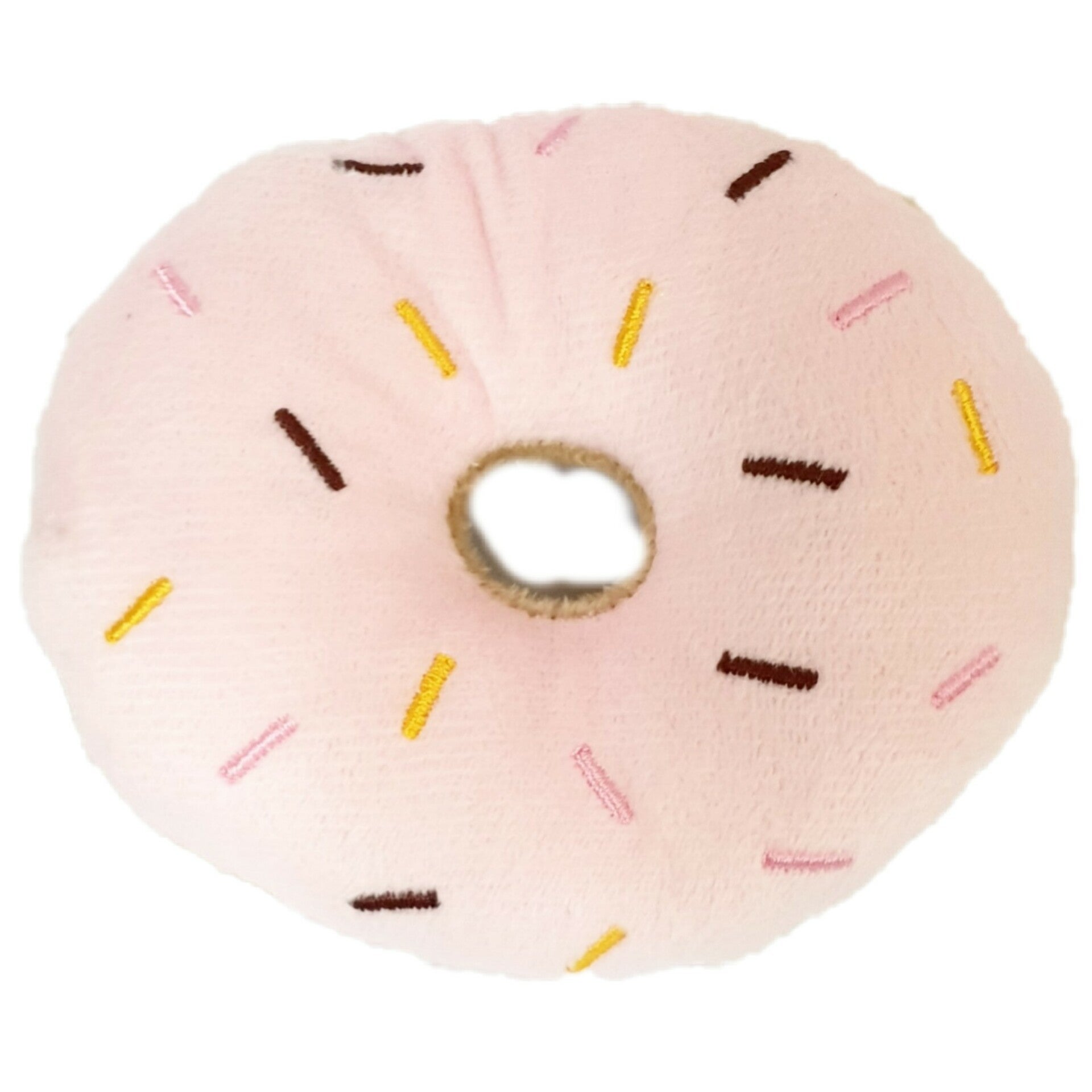 Pluche donut met pieper. De diameter is 10 cm. Qua formaat het meest geschikt voor puppy's of kleine/middelgrote hondenrassen.