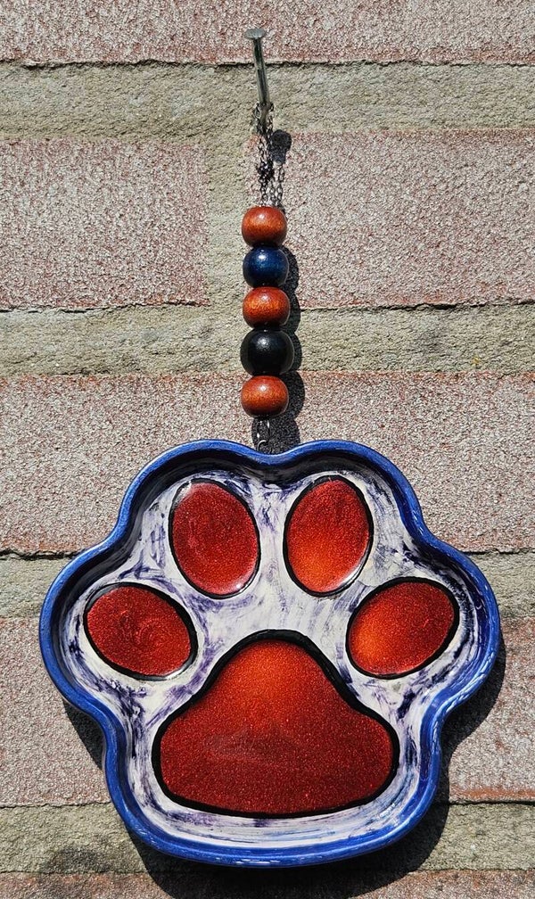 Deze liefdevolle Pootjeshanger is een handgemaakt ornament in de vorm van een dierenpootje – een subtiel en persoonlijk symbool van jouw band met een dier. De hanger is voorzien van een ophanghaakje met decoratieve kraaltjes, wat het geheel een speels en verfijnd karakter geeft.