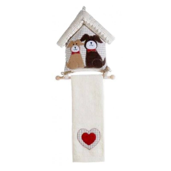 Een leuke manier om een handdoek op te hangen in bijvoorbeeld de toilet of badkamer! De handdoek met hartjesprint is inbegrepen. Het geheel is op te hangen door middel van een touwtje.