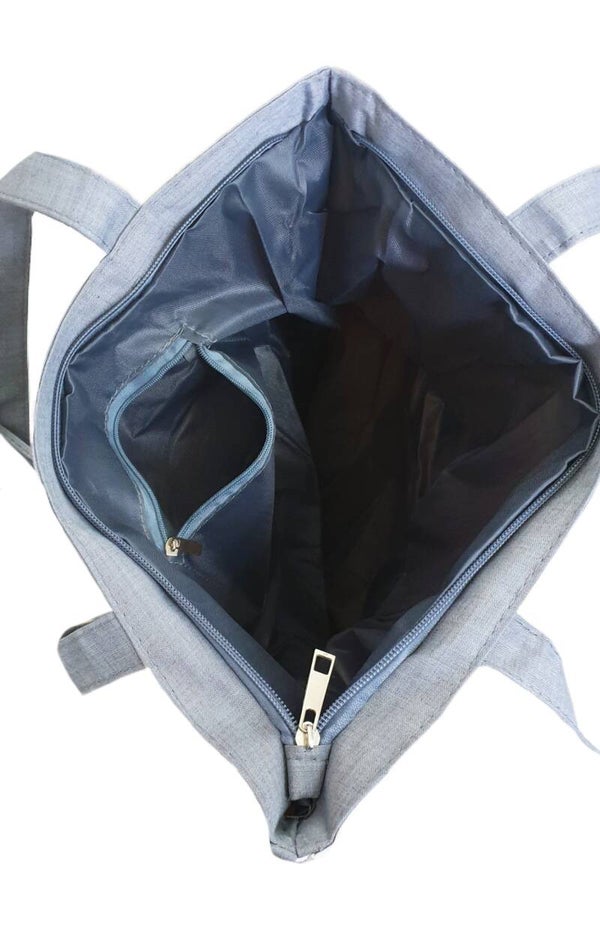 Kunstleren en stoffen tas met kattenprint, ritssluiting en binnenzak. Enkelzijdig bedrukt.