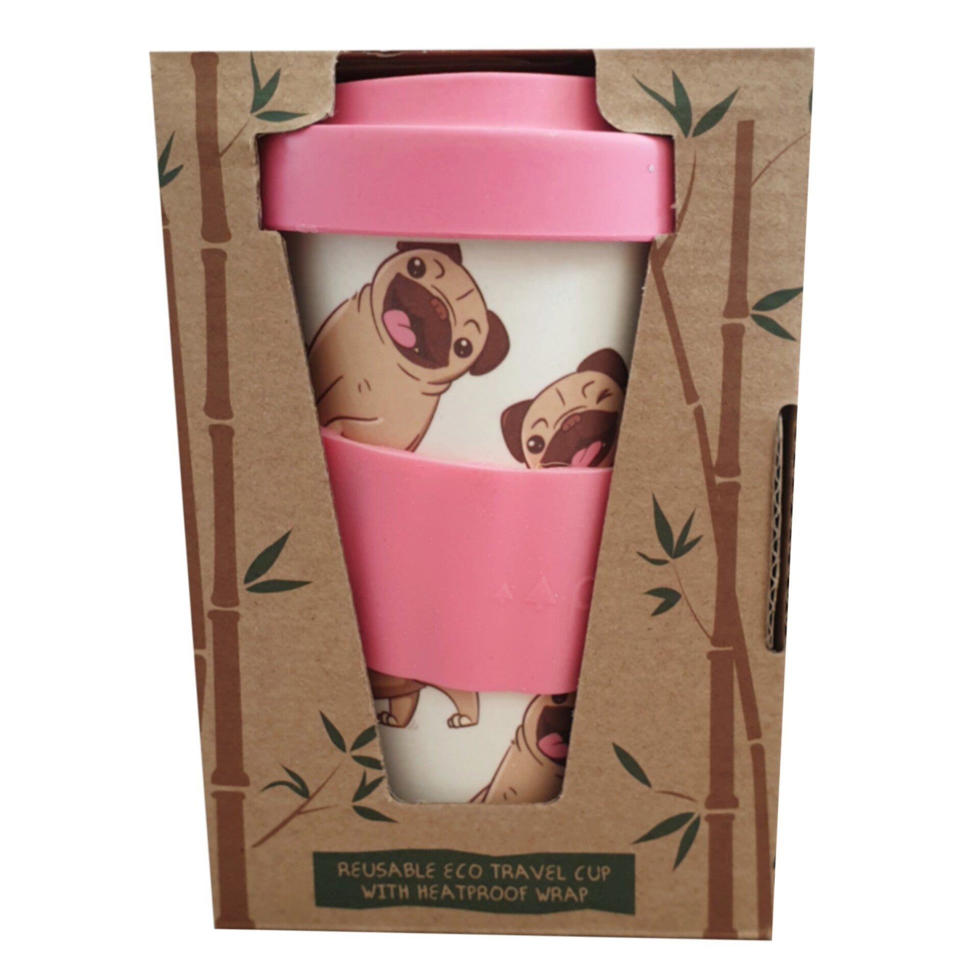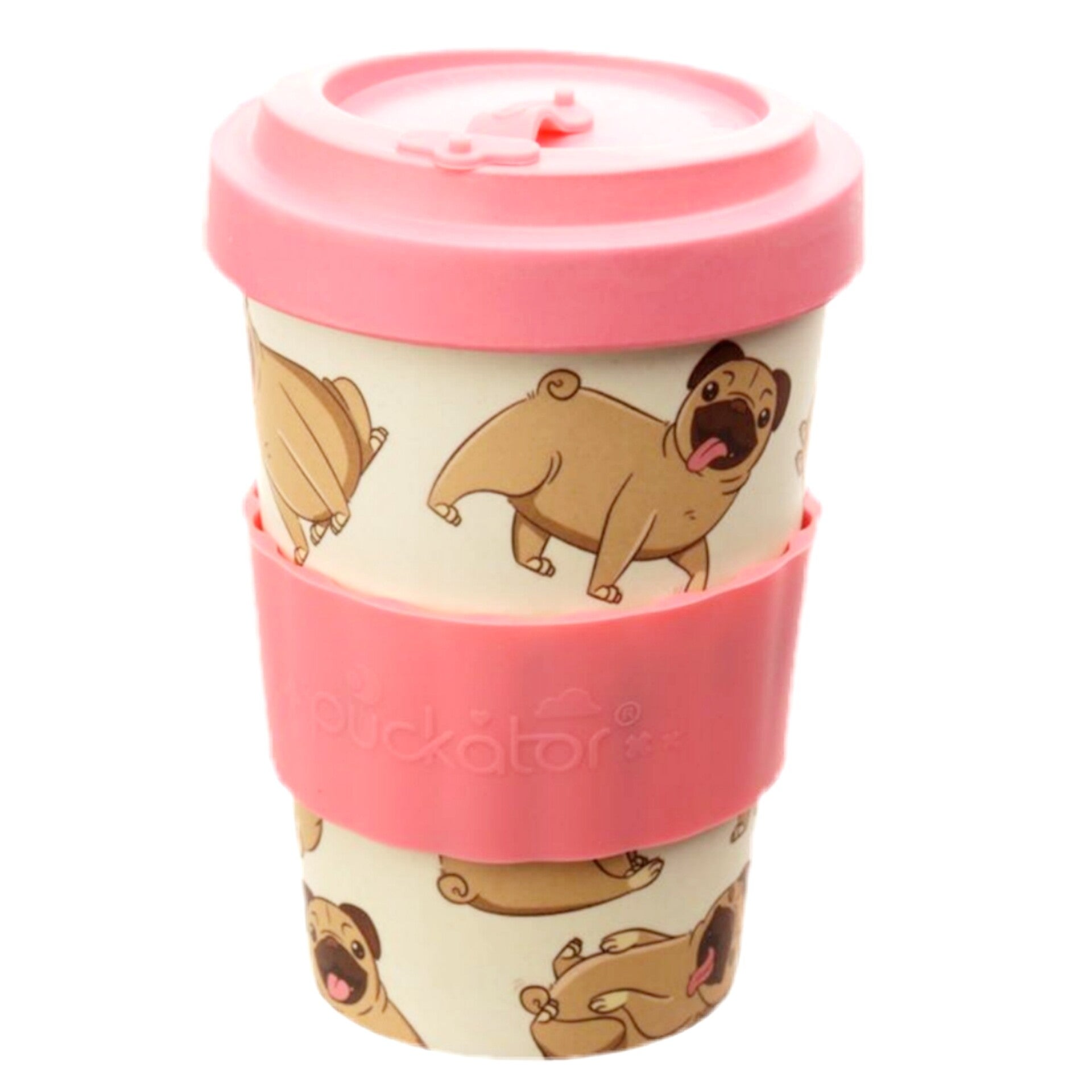 Reisbeker bamboe herbruikbaar "Mopshond"