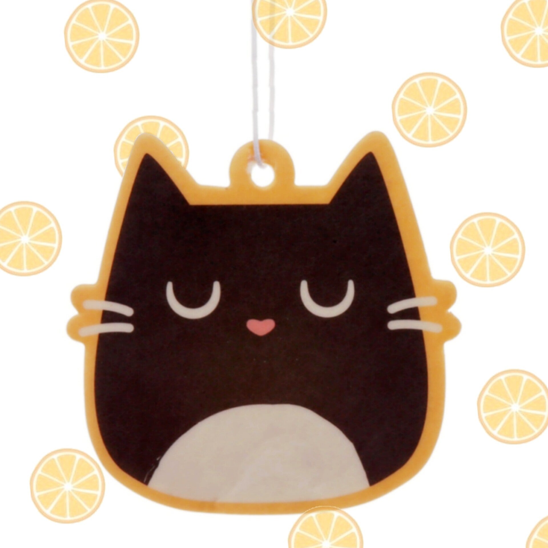 Luchtverfrisser van karton met sinaasappelbloesemgeur. De afmetingen zijn 7x 6,5 cm.