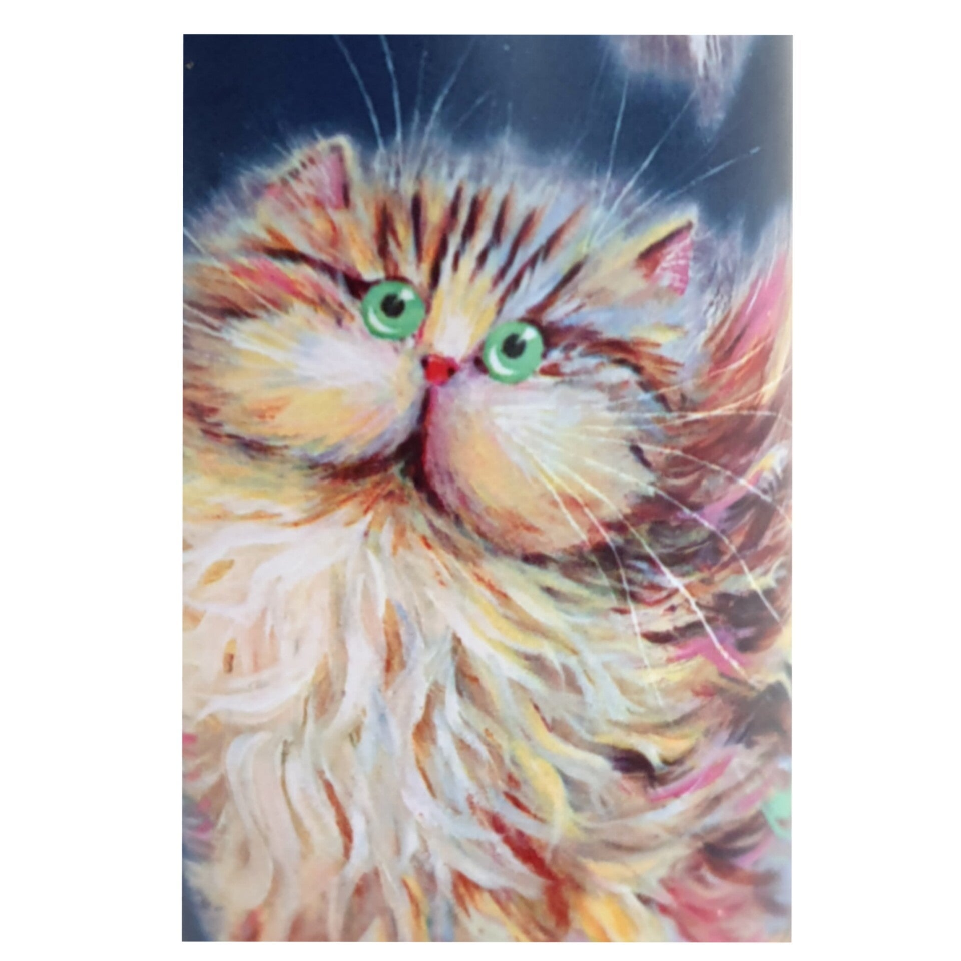 Thermosfles van roestvrij staal en met een opdruk van een een prachtig gekleurde kat. Sluit door middel van een schroefdop. Houdt warme dranken 12 uur warm, en koude dranken 24 uur koud.