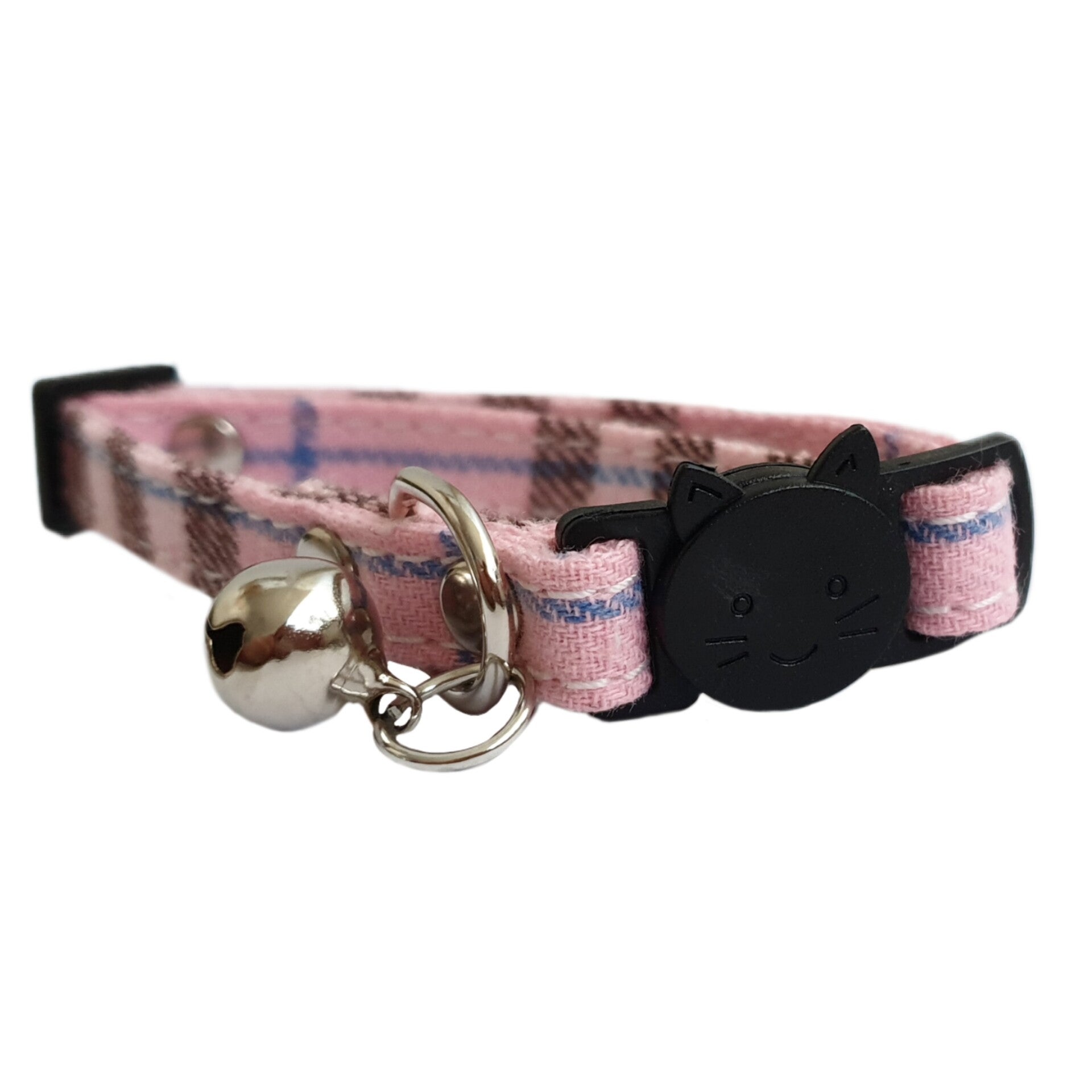 Leuk halsbandje van katoen voor volwassen katten. Met een belletje en een veilige self- release sluiting. Dit betekent dat als de kat vast komt te zitten en hij of zij hard trekt, de sluiting los zal schieten.