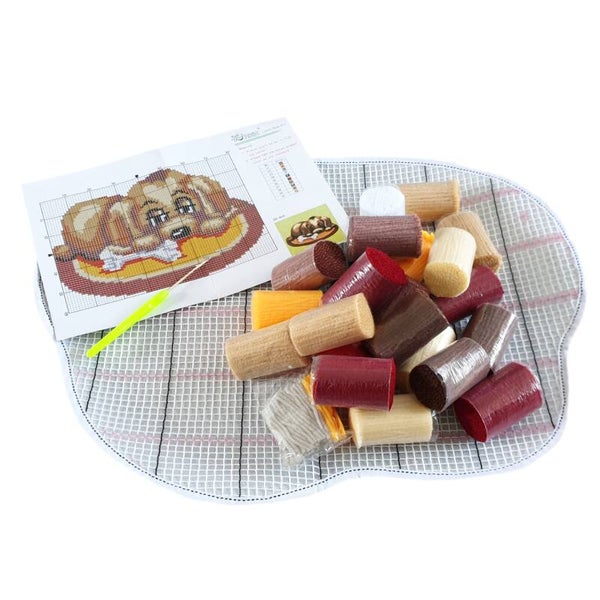 Knoop je eigen (honden)kleedje of (bad)matje met dit leuke complete pakket. Het pakket bevat garen, een haaknaald, een basiskleed en een gebruiksaanwijzing.