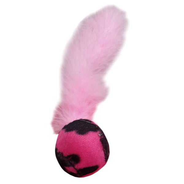 Balletje met een lange superzachte staart. Om het jachtinstinct te stimuleren. Het balletje heeft een diameter van 4 cm.De totale afmetingen zijn 25x 4x 4 cm.