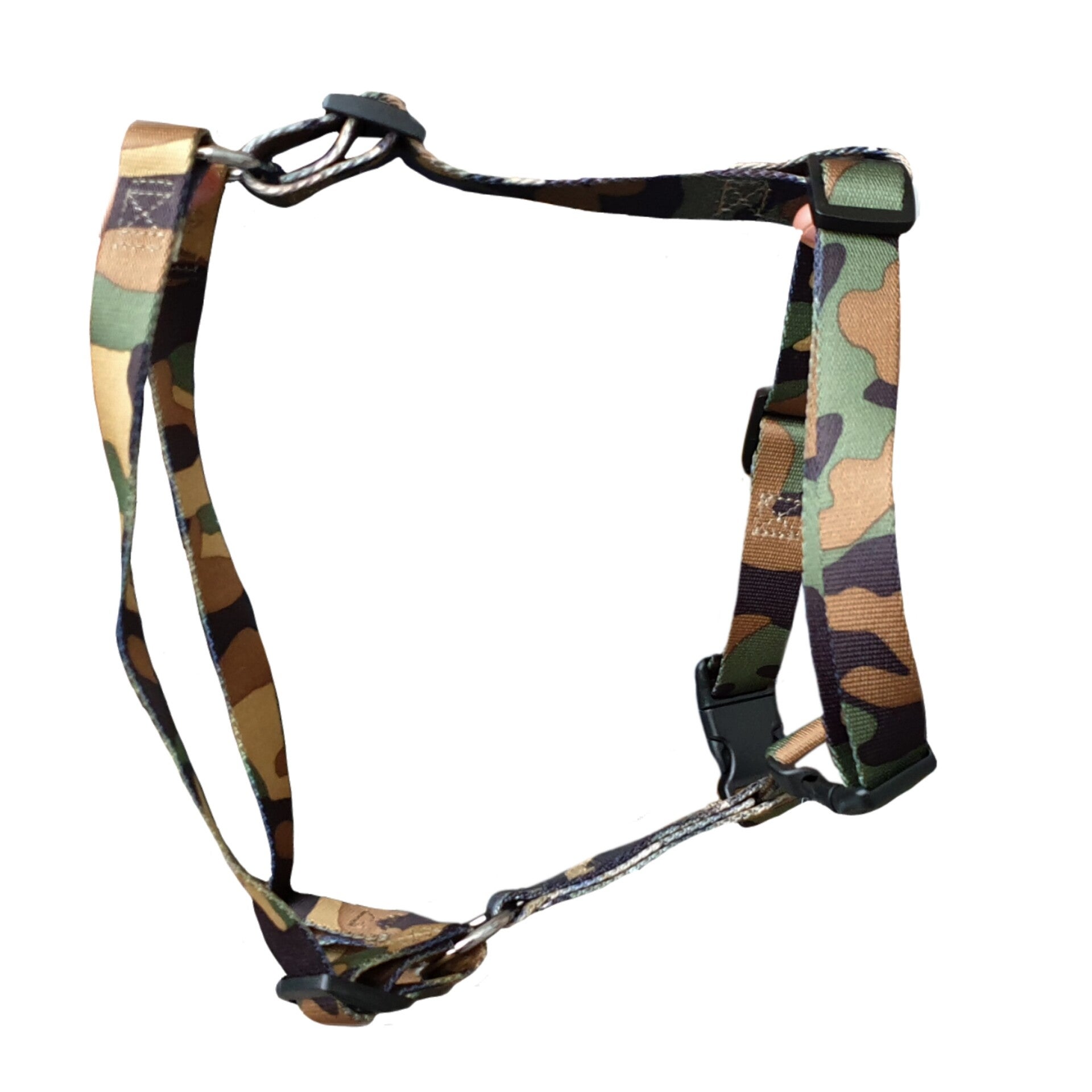 Borsttuig met stoere camouflageprint. Het tuig heeft veiligheidssluitingen zodat het tuig niet snel los schiet. Verstelbaar van 30 tot 50 cm, de breedte is