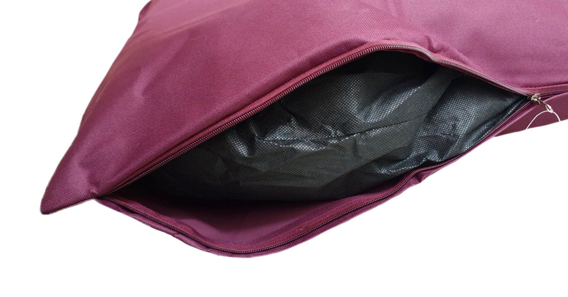 Mooi dik kussen met een afritsbare waterafstotende hoes. Het kussen is gevuld met polyester. De kleur is donker rood naar aubergine toe, wijkt iets af van de foto.