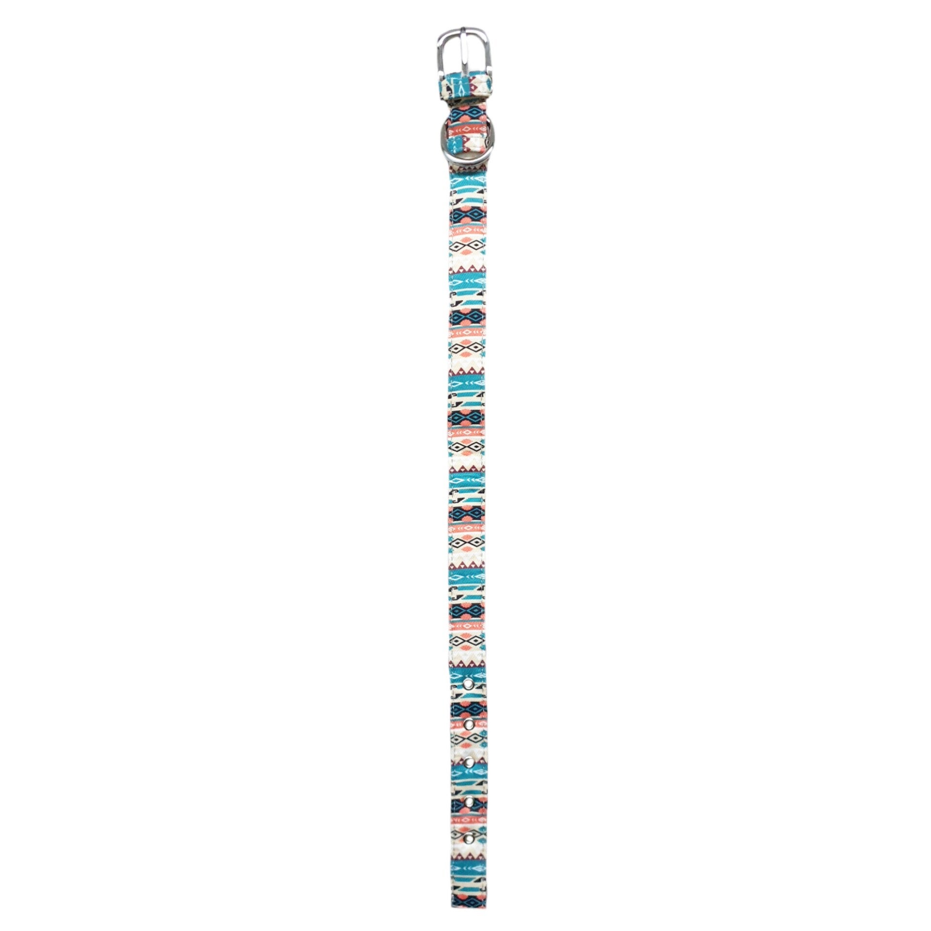 Vrolijke halsband gemaakt van stof. Verstelbaar van 26 tot 32 cm. De totale lengte is 37 cm. De breedte is 1,5 cm.