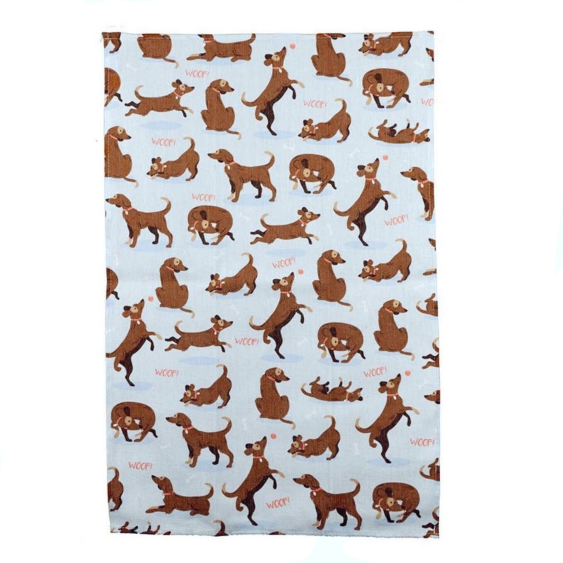 Lichtblauwe keukendoek met héél véél hondjes. De keukendoek is gemaakt van 35% katoen en 65% polyester. De afmetingen zijn 45x 70 cm.