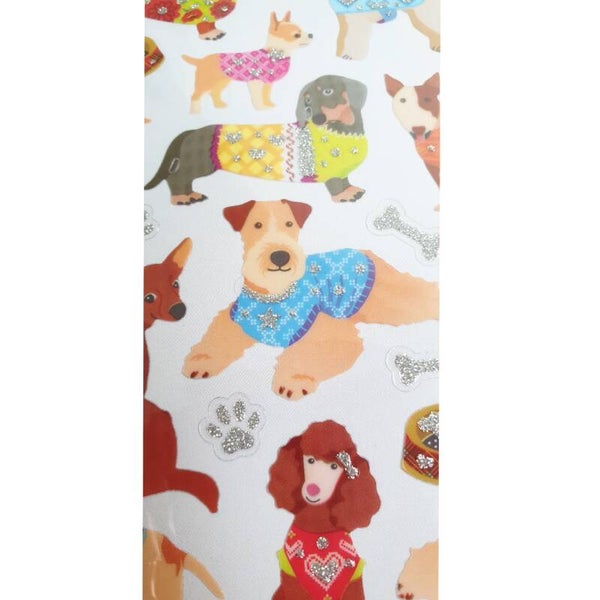 Leuke stickers met glittereffect. De stickers hebben verschillende formaten en er staan verschillende hondenrassen op afgebeeld.