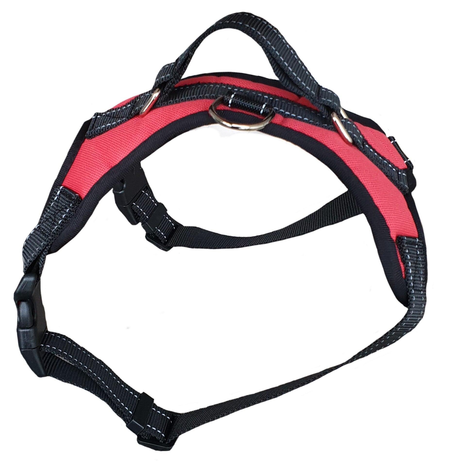 Borsttuig van nylon met een handig handvat om de hond maximaal onder controle te houden. Verstelbaar voor een borstomvang van 62 tot 77 cm.