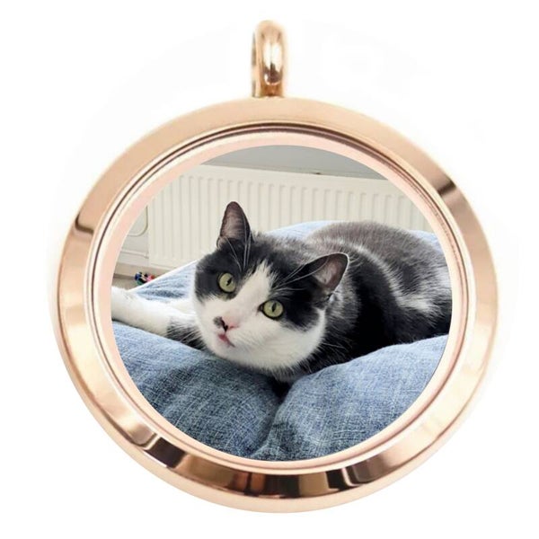 Met deze hanger kun je je huisdier altijd bij je dragen. Het is een rosegoud kleurig medaillon gemaakt van roestvrij staal. Aan beide zijden zit glas. De bovenkant kan eenvoudig open geschroefd, waarna er as, haar of een foto in geplaatst kan worden. Het medaillon is waterdicht dankzij een rubberen randje.