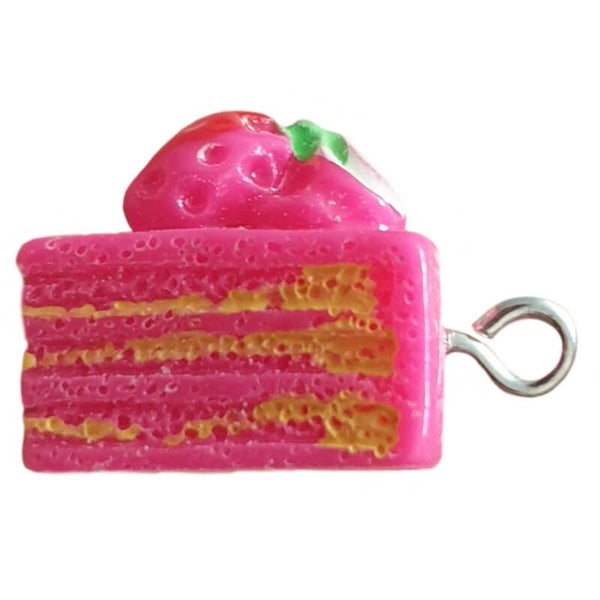 Plastic resin bedeltje in de vorm van een heerlijk stukje gebak.