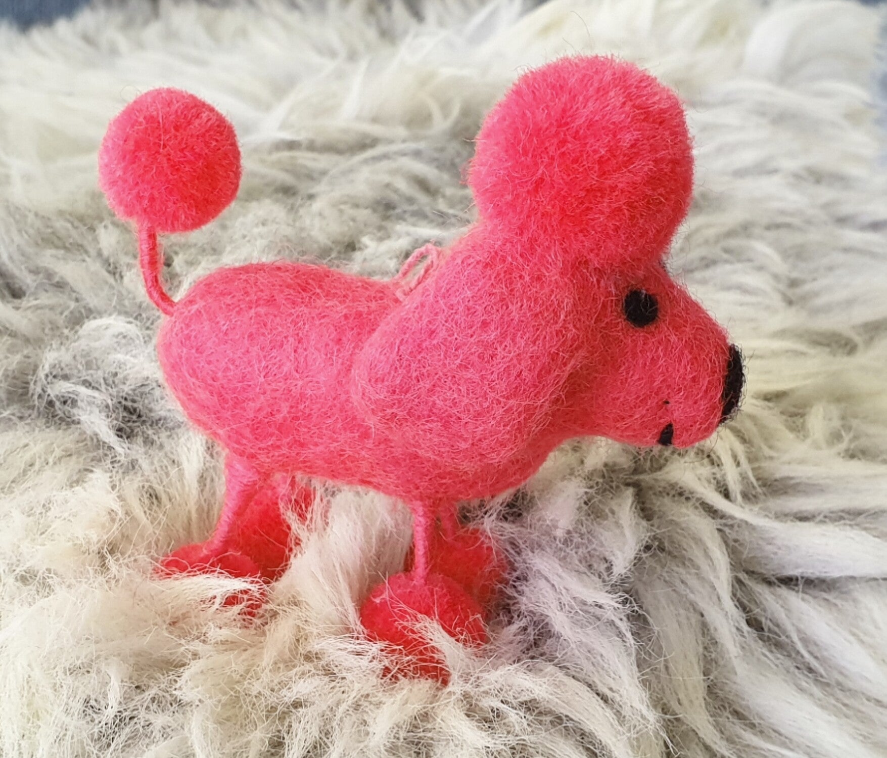 De beestjes zijn leuk voor in de kerstboom of gewoon leuk ter decoratie. Deze poedel in een knalrode/roze kleur zal zeker opvallen in elk interieur. De afmetingen zonder touwtje zijn 8x 4x 10 cm.