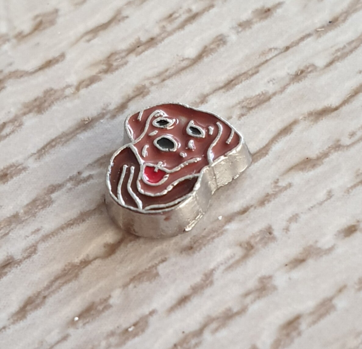 Kleine zilverkleurige bedel in de vorm van een hondje.
