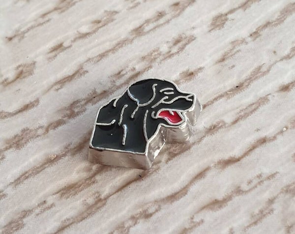 Kleine zilverkleurige bedel in de vorm van een hondje.