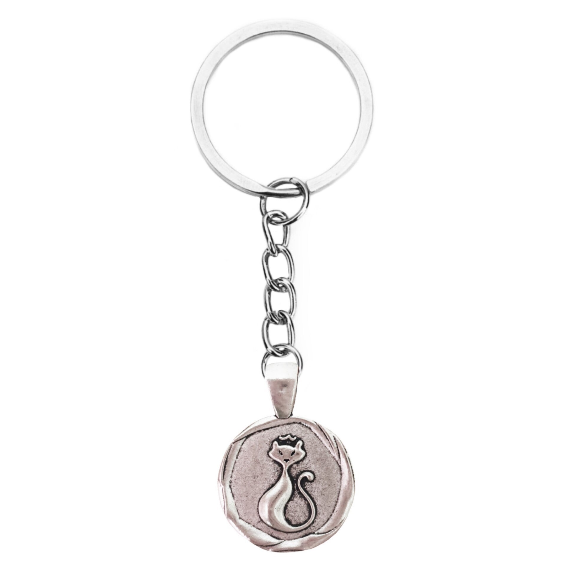 Leuke sleutelhanger met een glazen cabochon. Op de achterkant staat een kat.