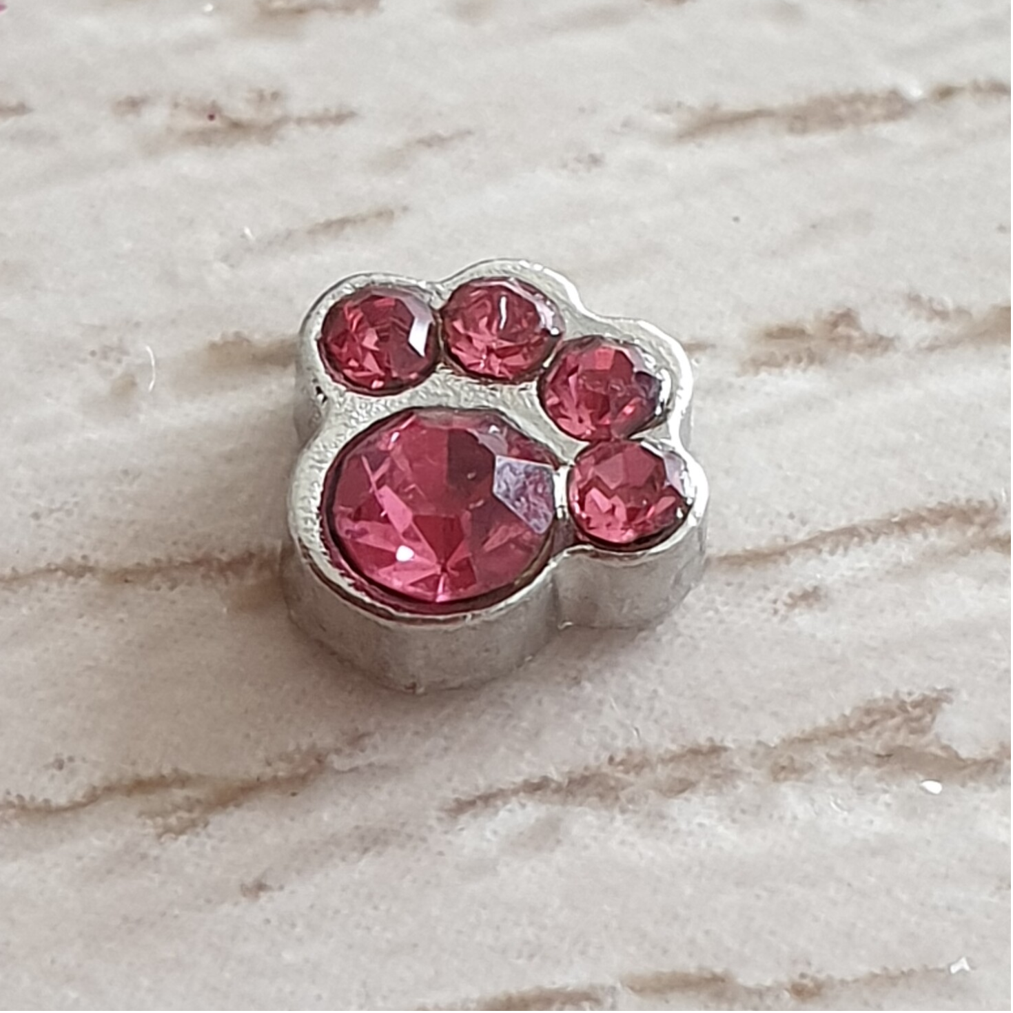 Metalen bedel ingelegd met steentjes.