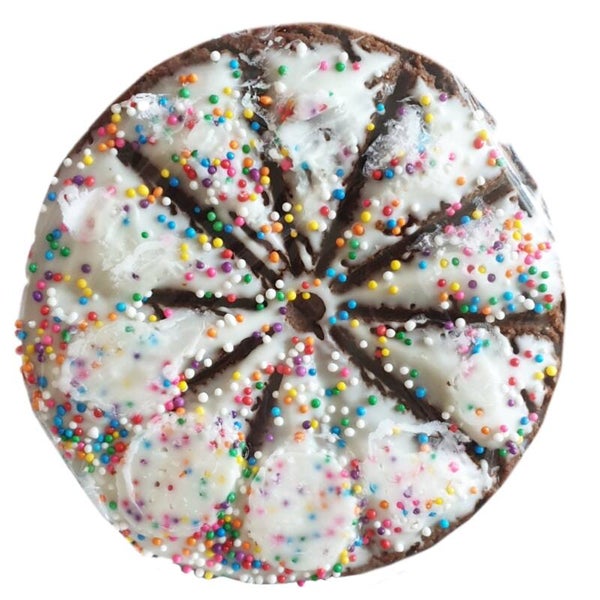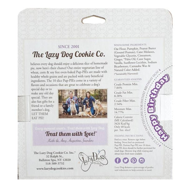 Een feestelijke traktatie van "The Lazy Dog" voor je jarige viervoeter! Het taartje is gemaakt van granen en is vrolijk versierd met gekleurde spikkels. Je kan het taartje makkelijk in stukjes breken.