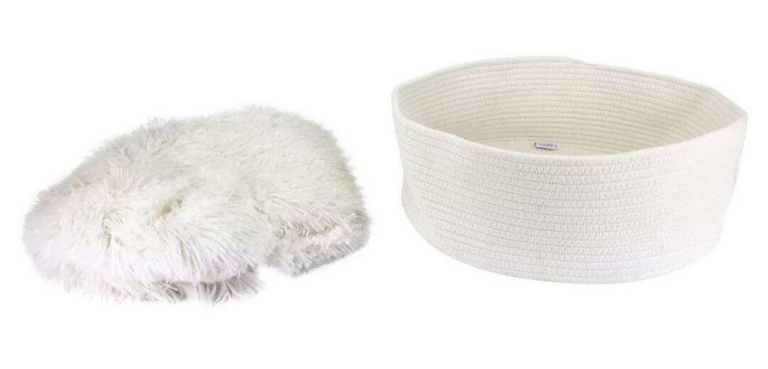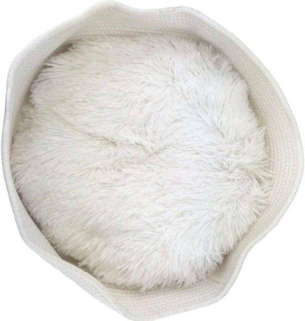 Mandje met een lekker zacht uitneembaar kleed. Zowel de mand als het kleed zijn uitwasbaar in de wasmachine. De mand heeft een diameter van circa 38 cm en een hoogte van circa 15 cm. Dit maakt de mand geschikt voor katten en kleine hondenrassen.