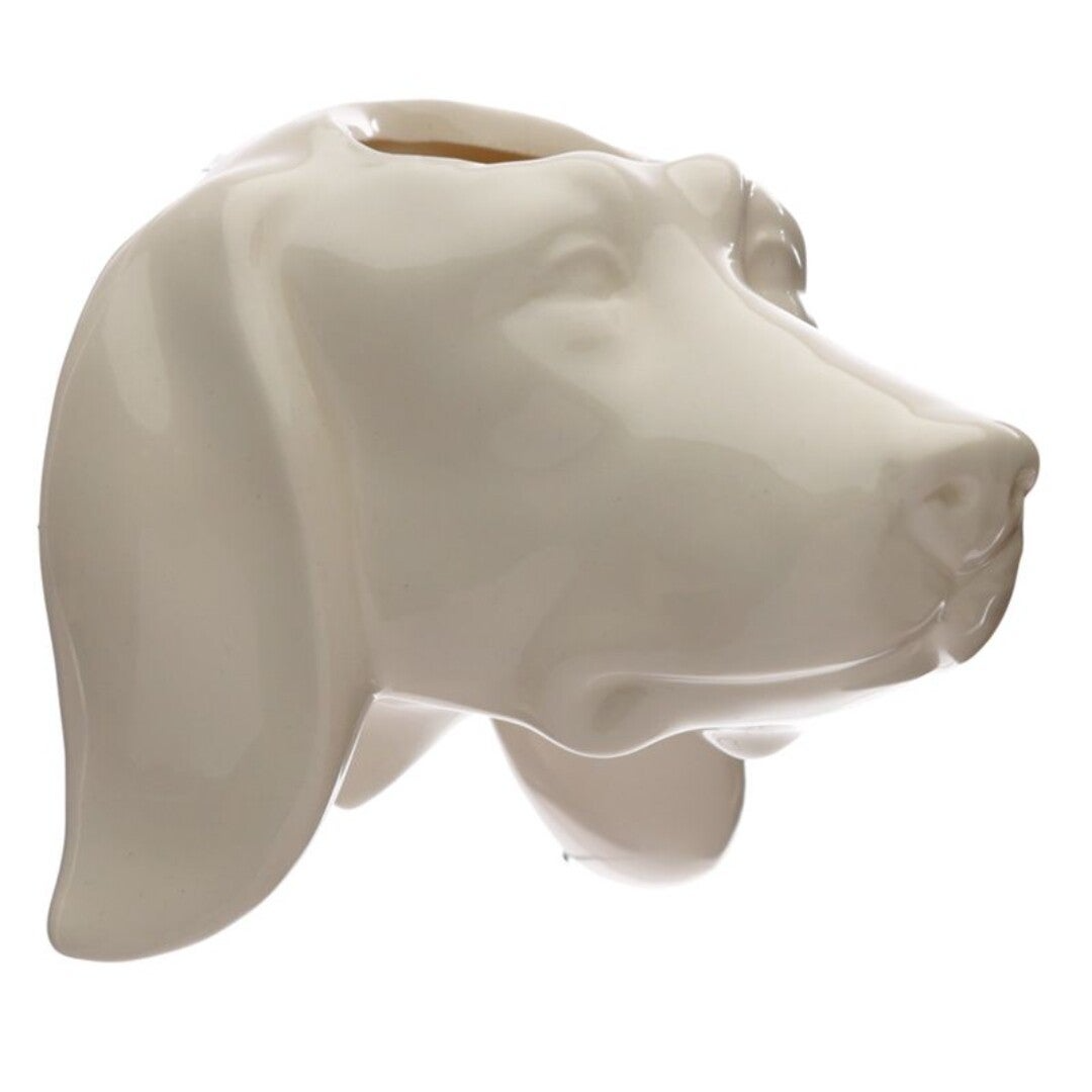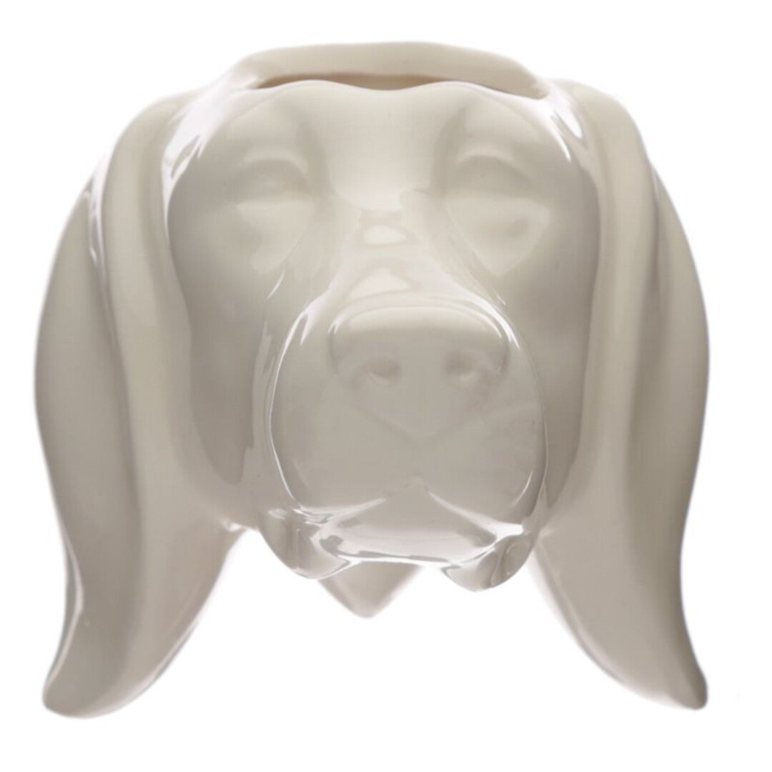 Grappige plantenbak in de vorm van een hondenhoofd, gemaakt van keramiek.